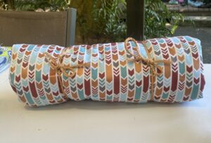 The protective quilt I made for the weaving is tied with plaits of harakeke from Aunty Ettie’s beautiful plant she had growing in her back garden in Thynne Street in Foxton. Just along the street from where Kiri grew up.