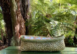 Seeing Kiri, Basil’s daughter, wear her Dad’s Kakahu at her wedding was the inspiration for this weaving.